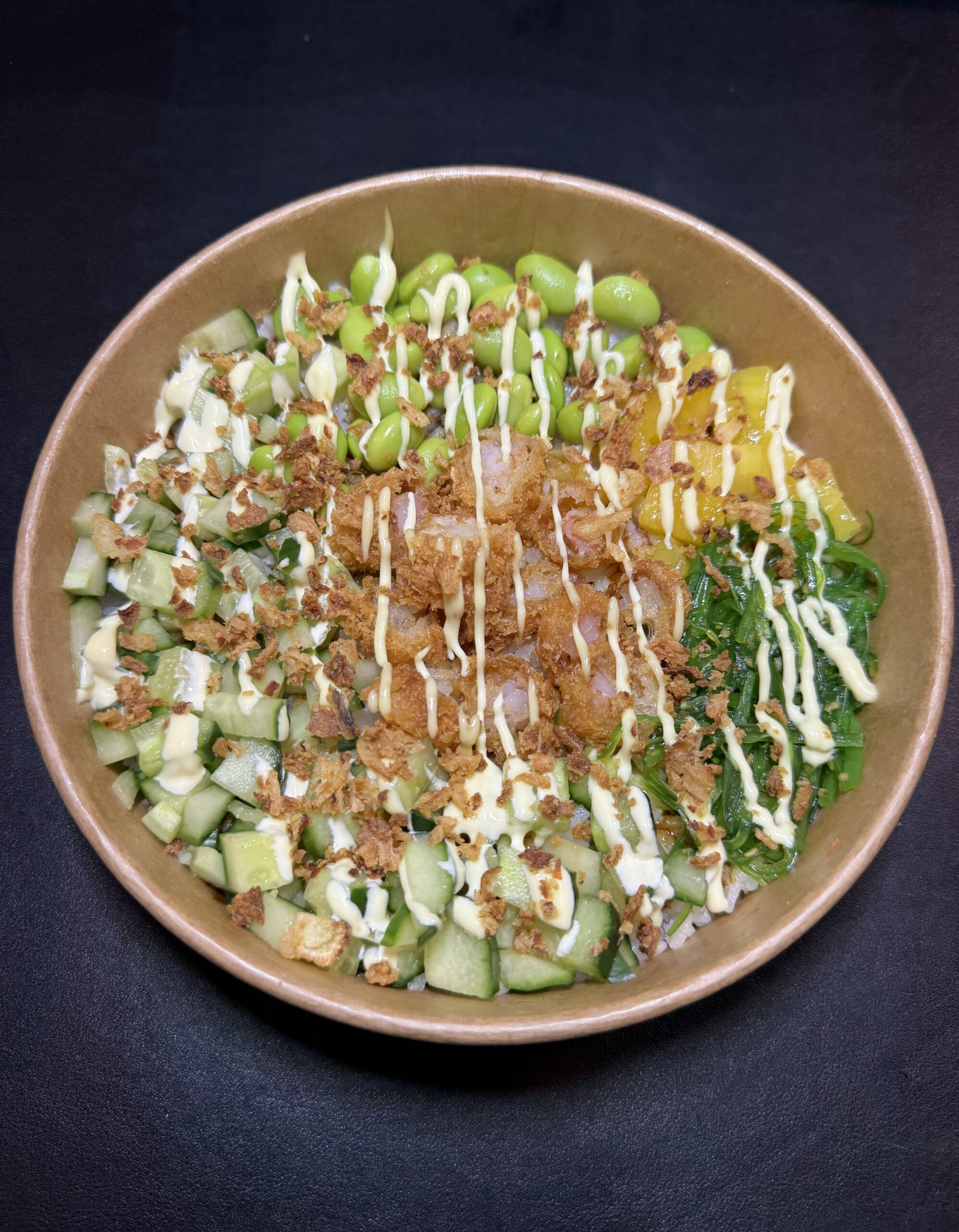 pokebowl gefrituurde garnaal lunch bowl
